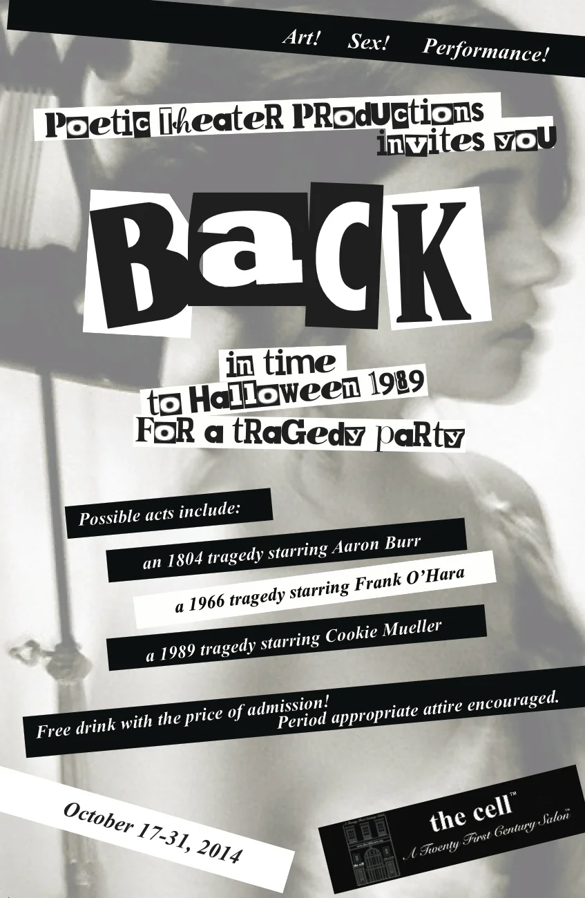 Set amidst the backdrop of a Greenwich Village gay club on Halloween 1989, the village partygoers take on the personas of past friends and lovers, many of whom lost their lives to AIDS. In her last days of life, Cookie Mueller makes a final journey to Varick Street to find her friends, or possibly to stop time, or perhaps to explore her history, or maybe just to dream. Everyone is invited to the tragedy party as Mickey Bolmer's rich poetic language takes us Back into the worlds of Aaron Burr, Frank O'Hara and Cookie Mueller: a world of love, loss, creation, and possibility.